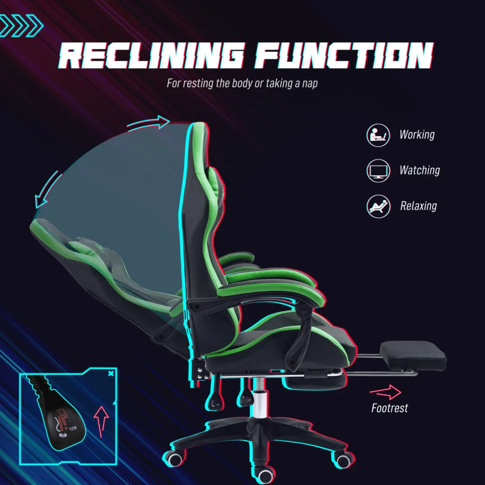 Καρέκλα Gaming Vinsetto με Ρυθμιζόμενο Ύψος και Ανακλινόμενη Πλάτη 65x65x121-129 cm Μαύρο και Πράσινο 921-618V06BK