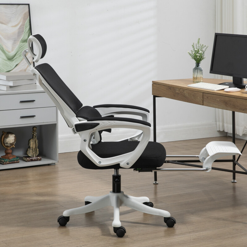 Εργονομική καρέκλα γραφείου Vinsetto με ρυθμιζόμενο ύψος με στήριγμα ποδιών και προσκέφαλο, 66x58x110-118 cm, Μαύρο 921-676V80BK