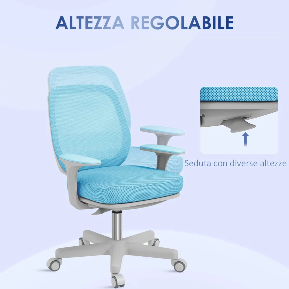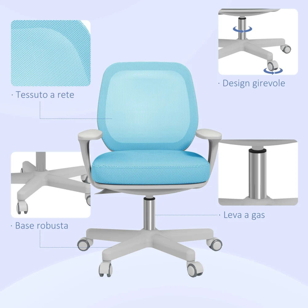Εργονομική και ανακλινόμενη καρέκλα γραφείου Vinsetto με ρυθμιζόμενο ύψος με 5 τροχούς, 55x48x82,5-94,5 cm, γαλάζιο 921-690V01LB