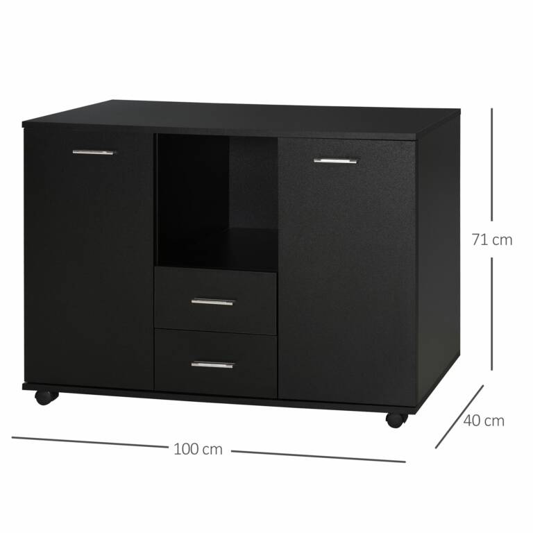 Ντουλάπι εκτυπωτή γραφείου Vinsetto με ρόδες 360° σε μαύρο ξύλο 924-009