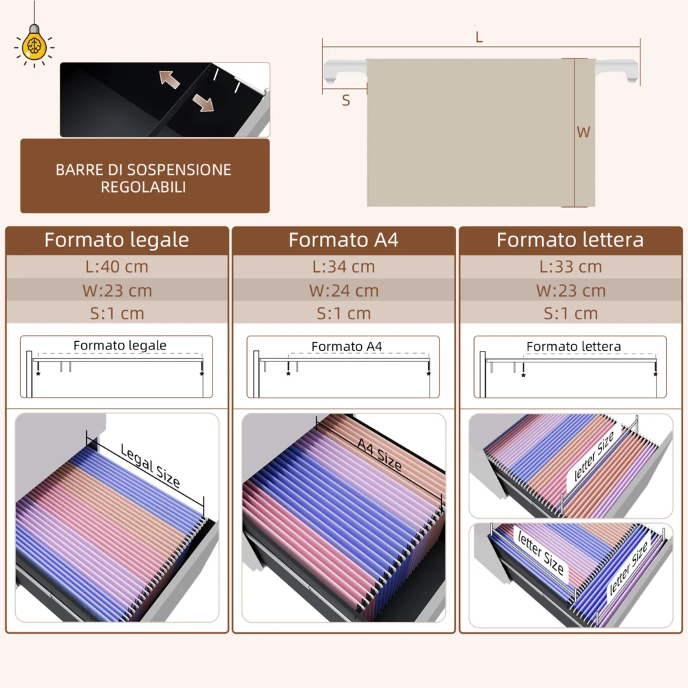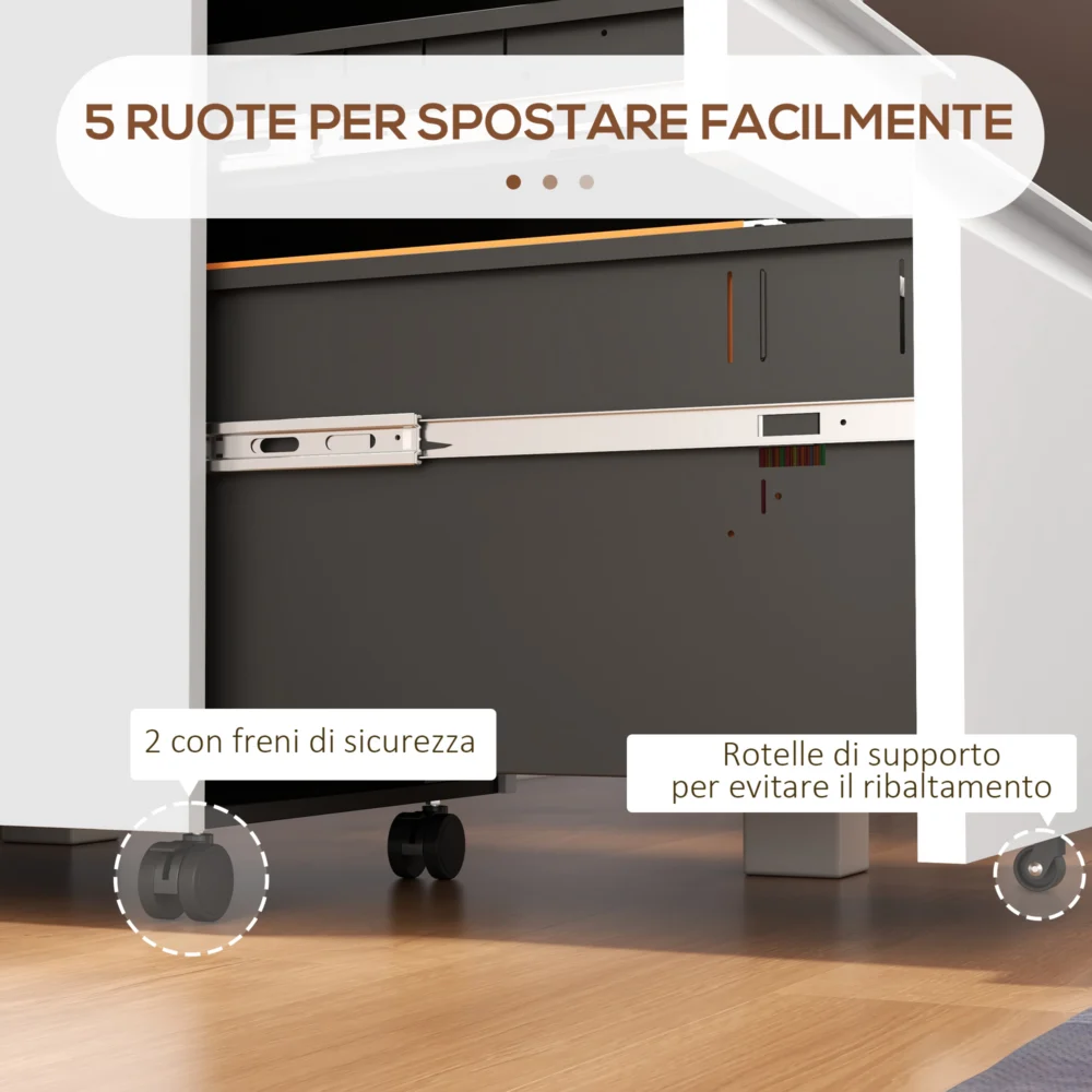 Ντουλάπι γραφείου Vinsetto με 3 συρτάρια με ρυθμιζόμενη μπάρα και δίσκο, σε ατσάλι, 37×43,5×60 cm, λευκό 924-067V00WT
