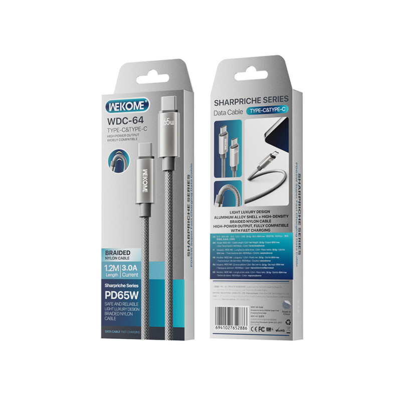 Το WEKOME WDC-64 είναι ένα καλώδιο USB-C σε USB-C υψηλής απόδοσης, ιδανικό για όσους χρειάζονται ταχύτητα και αξιοπιστία. Με μήκος 1.2 m και υποστήριξη ταχείας φόρτισης έως 65 W, φορτίζει εύκολα κινητά τηλέφωνα, tablets και μικρούς φορητούς υπολογιστές.