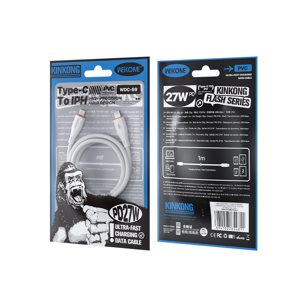 Το WEKOME WDC-69 είναι το ιδανικό καλώδιο USB-C σε Lightning για όσους θέλουν ταχύτητα και αντοχή. Με υποστήριξη PD 27W, φορτίζει γρήγορα iPhone και iPad, ενώ παράλληλα εξασφαλίζει ασφαλή μεταφορά δεδομένων.