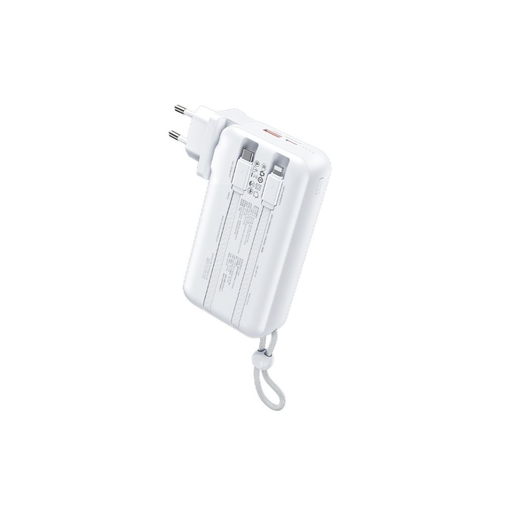 Ξέχνα τα μπερδεμένα καλώδια και τους χαμένους φορτιστές. Το WP-119 διαθέτει ενσωματωμένα καλώδια Lightning και USB-C, ώστε να είσαι πάντα έτοιμος. Το πτυσσόμενο φις πρίζας προσθέτει ακόμη μεγαλύτερη ευκολία — απλώς σύνδεσέ το και φόρτισε, χωρίς πρόσθετα εξαρτήματα.
