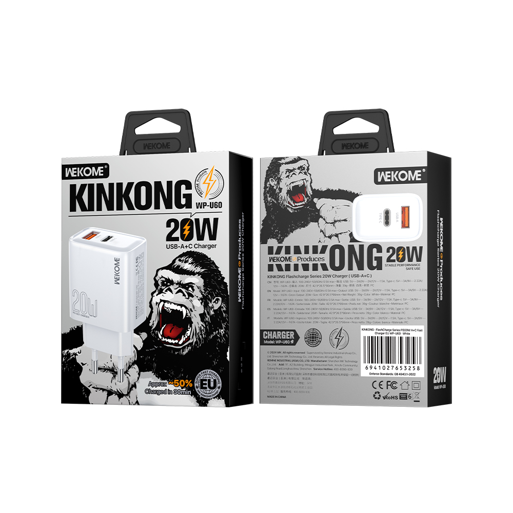 Φορτιστής Σπιτιού PD 20W WK WP-U60 2 Θέσεων Λευκό