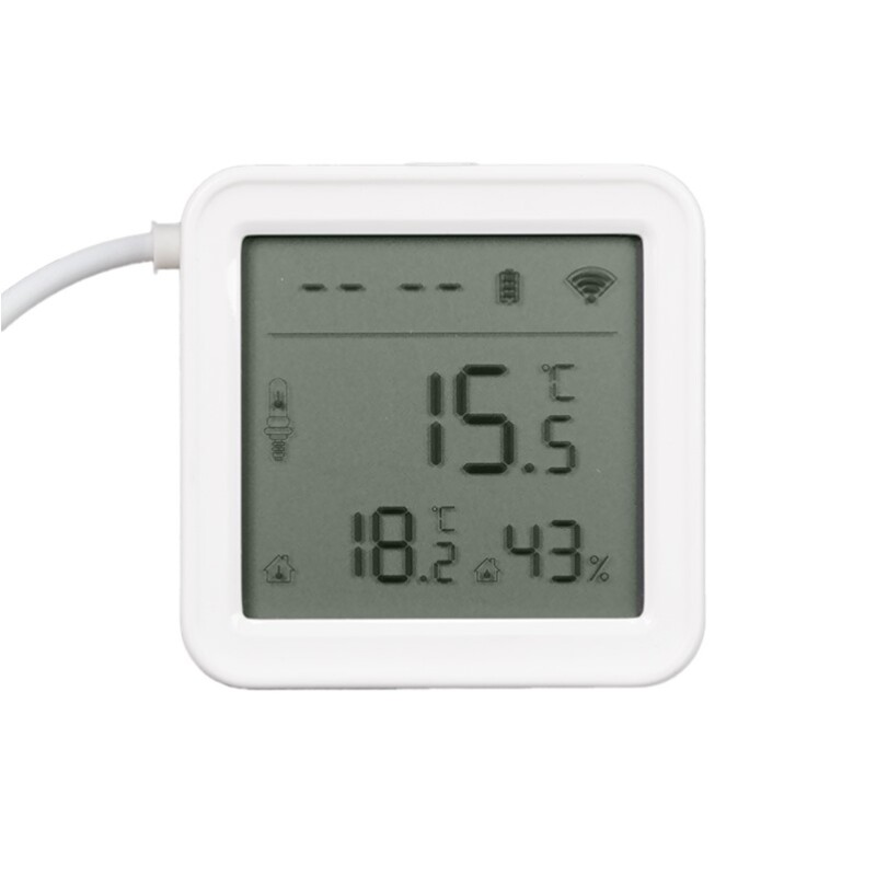 Έξυπνο θερμόμετρο υγρόμετρο με ψηφιακές ενδείξεις και εξωτερικό αισθητήρα. Δυνατότητα απεικόνισης των ενδείξεων και μέσω εφαρμογής (ΤUYA) αν συνδεθεί με το WiFi της οικίας. Λειτουργεί με 3 μπαταρίες ΑΑΑ (δεν περιλαμβάνονται)