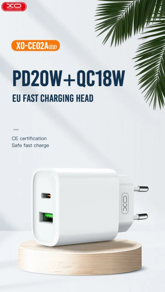 Ο φορτιστής τοίχου XO CE02A προσφέρει αξιόπιστη και γρήγορη φόρτιση για τις συσκευές σας, συνδυάζοντας τεχνολογίες Power Delivery (PD) και Quick Charge 3.0 (QC 3.0). Με δύο εξόδους (USB-A και USB-C), επιτρέπει τη φόρτιση δύο συσκευών ταυτόχρονα, εξοικονομώντας χρόνο και χώρο. Η κομψή λευκή σχεδίαση του ταιριάζει σε κάθε περιβάλλον, ενώ η ανθεκτική κατασκευή του εξασφαλίζει μακροχρόνια χρήση.