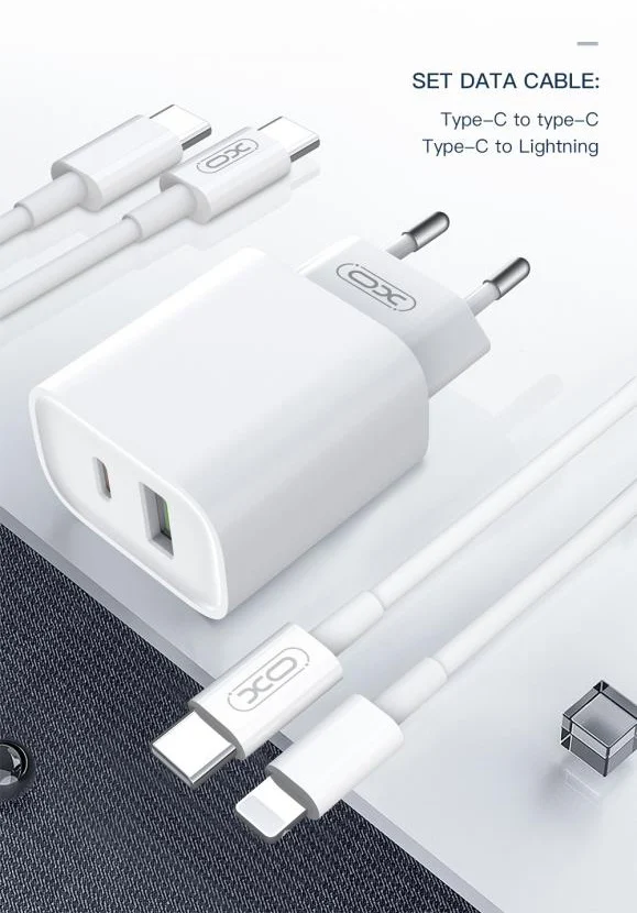 XO CE02A Φορτιστής Τοίχου 20W με Power Delivery & Quick Charge 3.0 – 2 Θύρες (USB-A & USB-C) + Καλώδιο USB-C σε USB-C