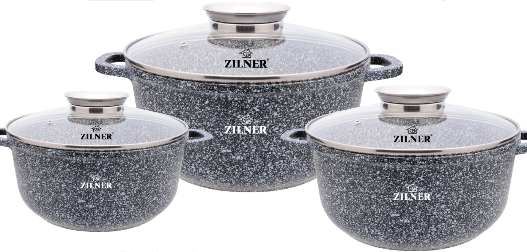 Το σετ κατσαρολών ZILNER 7088 διαθέτει κεραμική-μαρμάρινη αντικολλητική επίστρωση, που προσφέρει υγιεινό μαγείρεμα χωρίς κόπο.