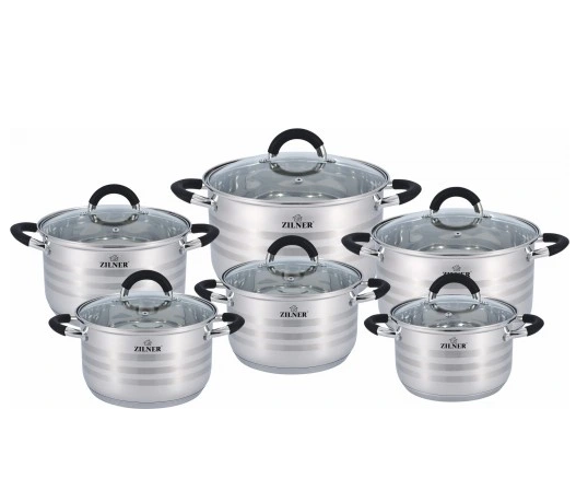 Σετ Μαγειρικά Σκεύη από Ανοξείδωτο Ατσάλι 12 τεμάχια Γκρι ZL-8332 ZILNER