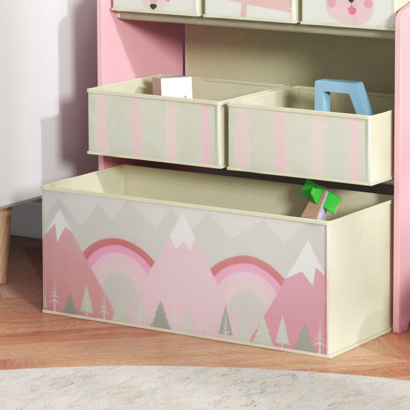 ZONEKIZ Παιδικό ράφι παιχνιδιών με 6 αφαιρούμενα υφασμάτινα δοχεία, 63x30x66cm, Ροζ 311-059V80PK