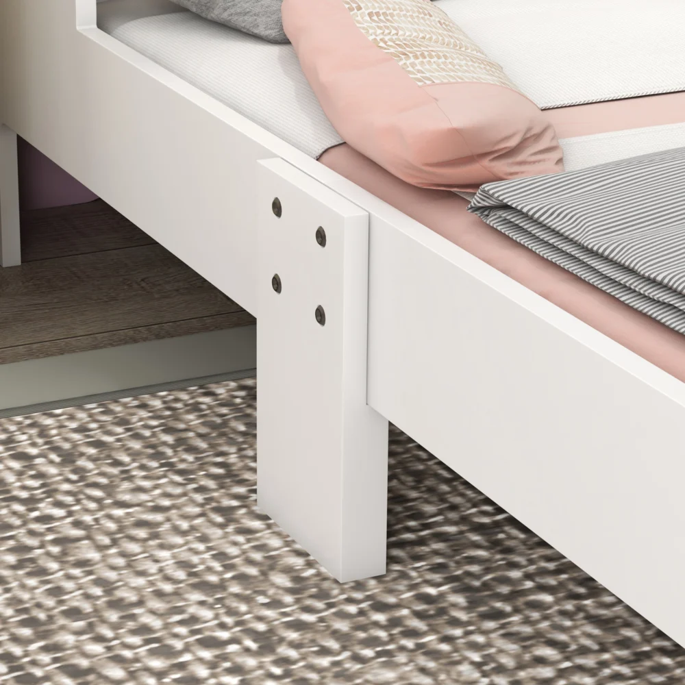 ZONEKIZ Κούνια για παιδιά 3-6 ετών με πλαϊνά κάγκελα κατά της πτώσης από MDF, 143x74x66 cm, Λευκό και Ροζ 313-010V00PK